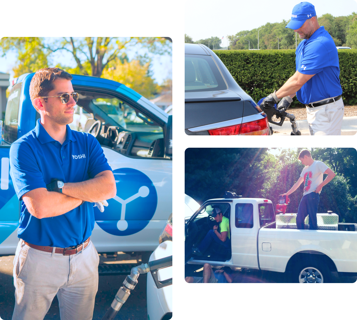 Yoshi began in 2015 as a gas delivery service, delivering gas to your vehicle, wherever you were using small pickup trucks with top loaded DOT approved gas tanks in the back.